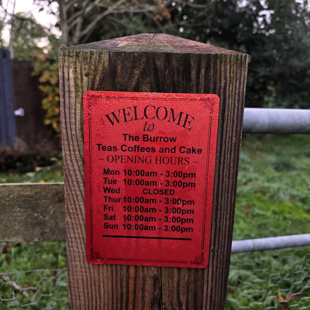 The Burrow is located along the footpath at the side of, The Green, Upper Harlestone, Northampton NN7 4EX. Check the sign below for opening times.