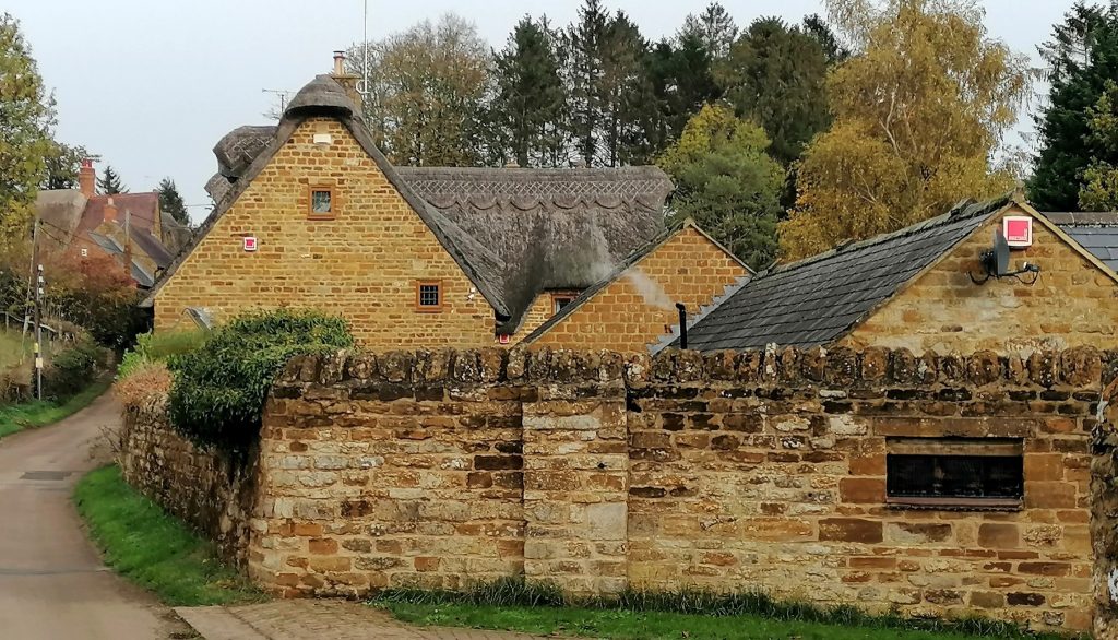 Alongside the stone, flashes of red brickwork add warmth and rhythm. In the 19th century, Upper Harlestone was home to a small brickworks, and the remnants of its kiln still survive. Those handmade bricks were used in boundary walls, garden gates and tall chimney stacks — features that now feel as integral to the villages as the cottages themselves.