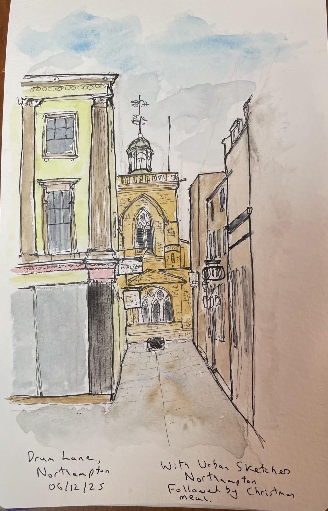 This time, I opted for something a little calmer and gatecrashed Urban Sketchers Northampton – a group that comes together to sketch and paint aspects of the county – always on location.