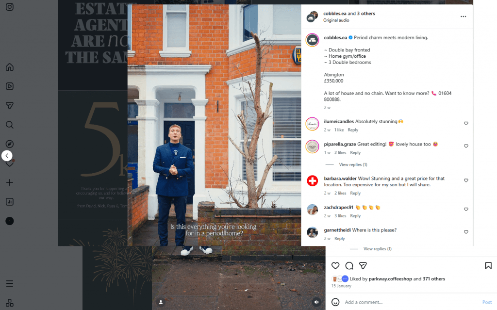 Cobbles Estate Agency have amassed over 500,000 views online from marketing campaigns on social media in just three months of trading.