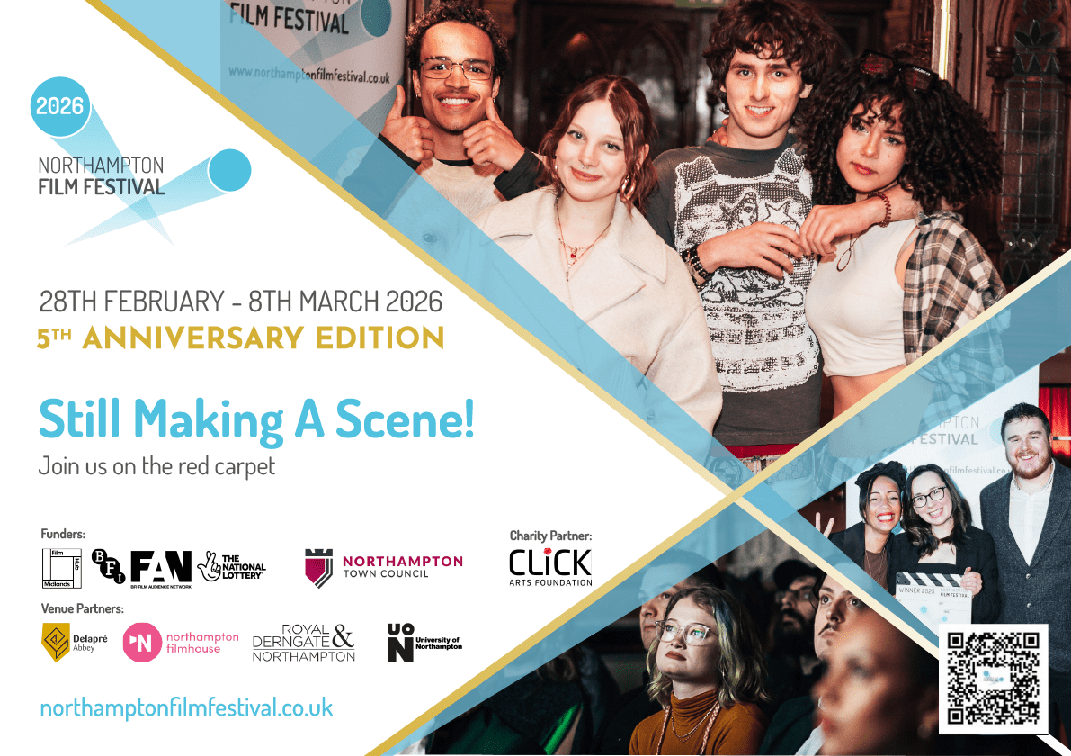 The 2026 festival is made possible with support from Northampton Town Council and Film Hub Midlands, funded by the National Lottery. The Northamptonshire Community Foundation has also supported the festival’s Young Programmers scheme.