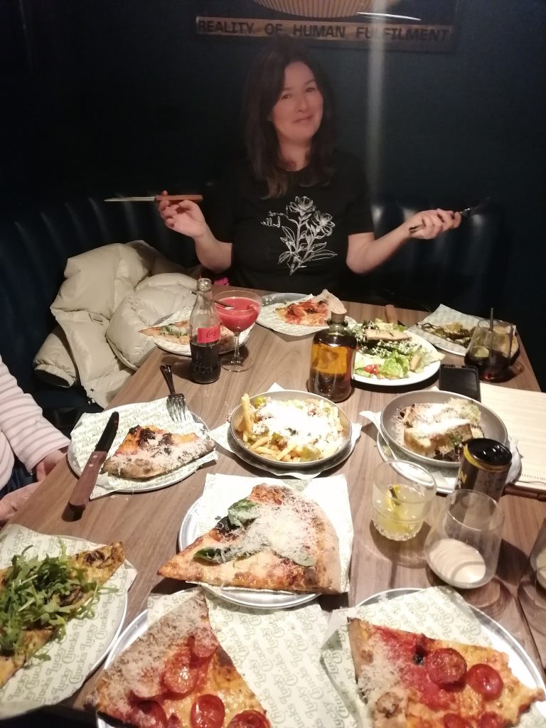 Here’s where you have to make a decision; do you order one huge pizza or several pizzas by the slice? We went for ‘by the slice’ and had to choose between pizzas with names such as Mister Ray and Trust Me Bro.