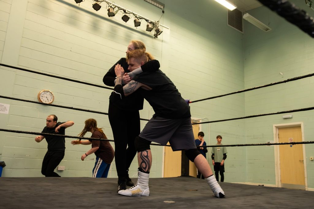 The atmosphere in the room is supportive, friendly and welcoming. Many come with a love of wrestling gleaned from watching their favourite villains on the big screen, with a desire to have a go themselves.