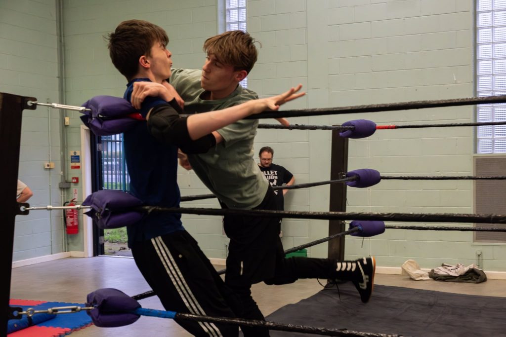 To understand more, I visited a WIN Wrestling training session at Far Cotton Recreation Ground. On a Sunday morning, a full-sized ring is assembled, transforming an ordinary space into a training ground for aspiring wrestlers.